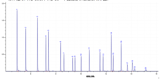 下述是20种多溴联苯和多溴二苯醚混杂标准水溶液TIC图: