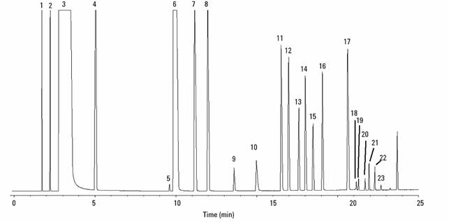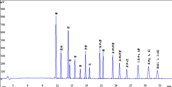 16种多环芳芬烃标准品色谱仪色谱图下述: