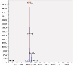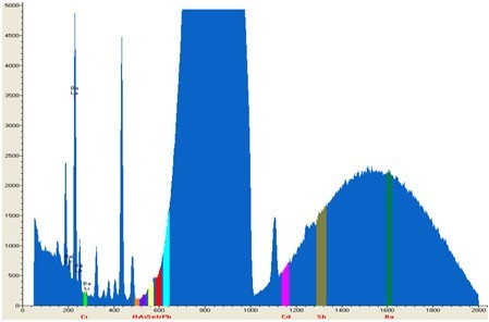 控制EDX 9000C分析仪器对小汽车部件波璃图纸打击检测,检测情况1秒,其检测谱图和数据源有以下图: