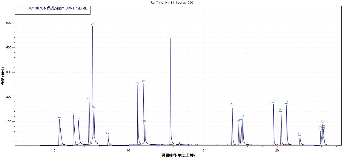 纺织类品中23种偶氮活性染料的软件测试TIC图